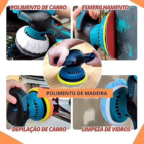 Politriz Lixadeira Portátil Sem Fio para polir carro Multifuncional Elétrica 12v Polimento Automotivo